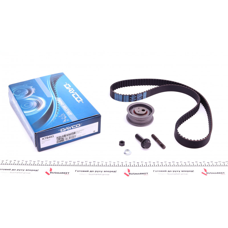 DAYCO KTB403 Комплект ГРМ VW T4 1.9D/TD (55405) — Двигун від DAYCO. Підходить для: VOLKSWAGEN (TRANSPORTER T4 автобус (70XB, 70XC, 7DB, 7DW) 12, PASSAT Variant (3A5, 35I) 10); AUDI (80 седан (89, 89Q, 8A, B3) 8, 80 Avant (8C, B4) 12); SEAT (IBIZA Mk II (6K1) 8, CORDOBA седан (6K1, 6K2) 8); та ін..