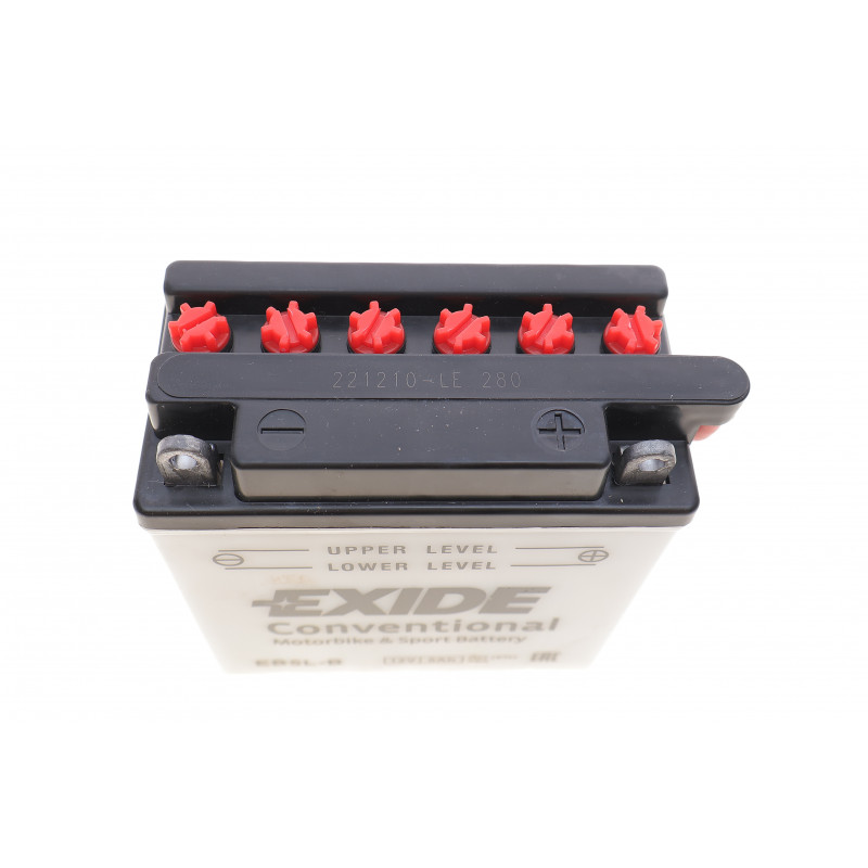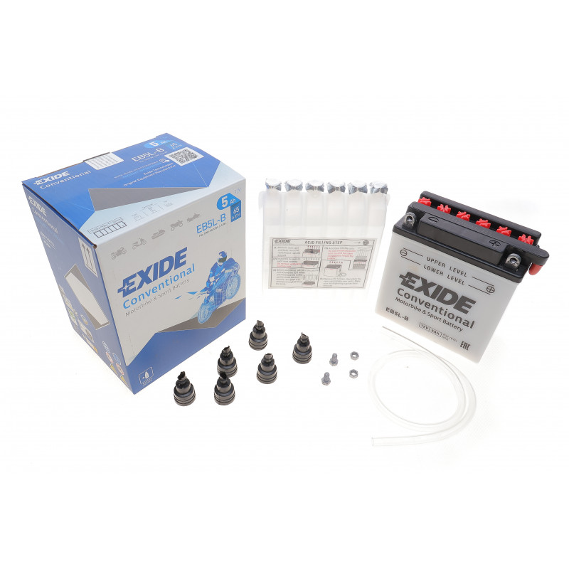 EXIDE EB5L-B Акумуляторна батарея 5Ah/65A (120x60x130/+R/B0) (мото) (сухозаряджений) — Електрика від EXIDE. Підходить для: MALAGUTI MOTORCYCLES (YESTERDAY 12, DRAKON з 1); YAMAHA MOTORCYCLES (CRYPTON з 1, CRYPTON з 11); HONDA MOTORCYCLES (MTX 12, SCV 12); HERCULES MOTORCYCLES (FOX 12, SAMBA 12); SIMSON MOTORCYCLES (SR з 1, SR 12); та ін..