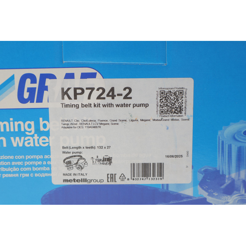 GRAF KP724-2 Комплект ГРМ + помпа Renault Clio III/Laguna III/Megane III/ Scenic III 1.6 16V 05- (27x132z) (PA724A) — Двигун від GRAF. Підходить для: RENAULT (MEGANE II седан (LM0/1_) з 9, LAGUNA II Sport Tourer (KG0/1_) з 2); та ін..